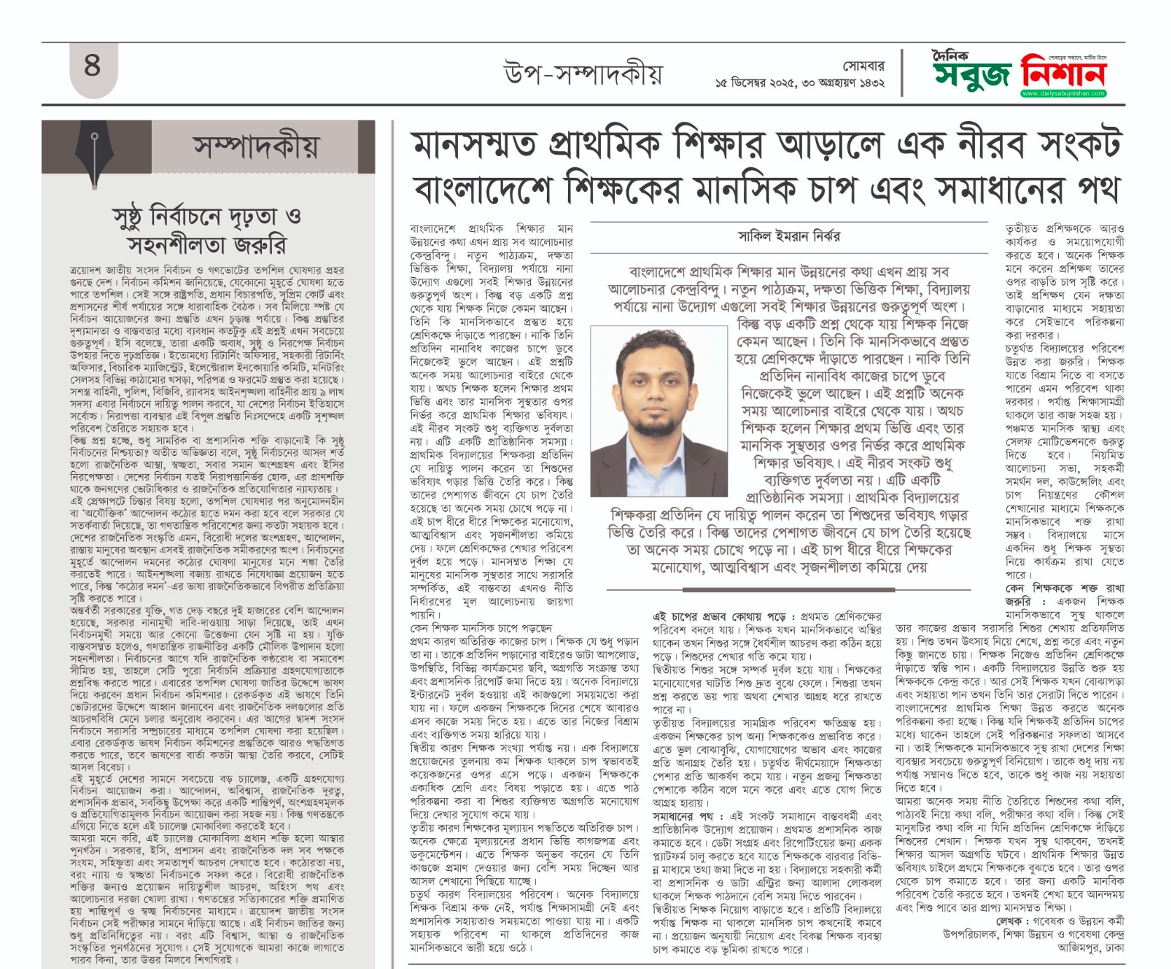 My Article on a Daily Newspaper on “ব্লুমের ট্যাক্সোনমি প্রয়োগেই বাংলাদেশে প্রাথমিক শিক্ষার চেহারা বদলে যেতে পারে“(14 December, 2025)“Bloom’s Taxonomy in Bangladesh’s Primary Education: A Cognitive‑Pedagogical Review with Empirical Insight”