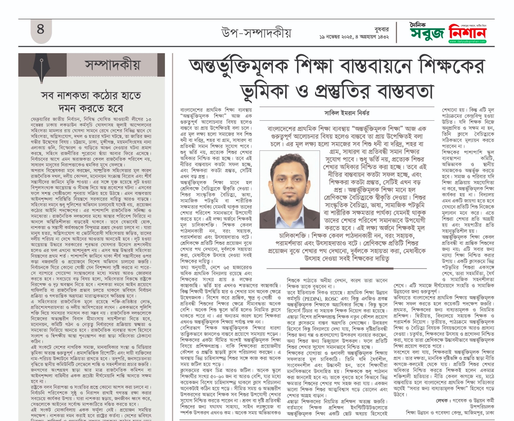 This Article Published In a Daily Newspaper Focuses on : The Role of Teachers and the Reality of Their Preparedness in Implementing Inclusive Education on November 19,2025